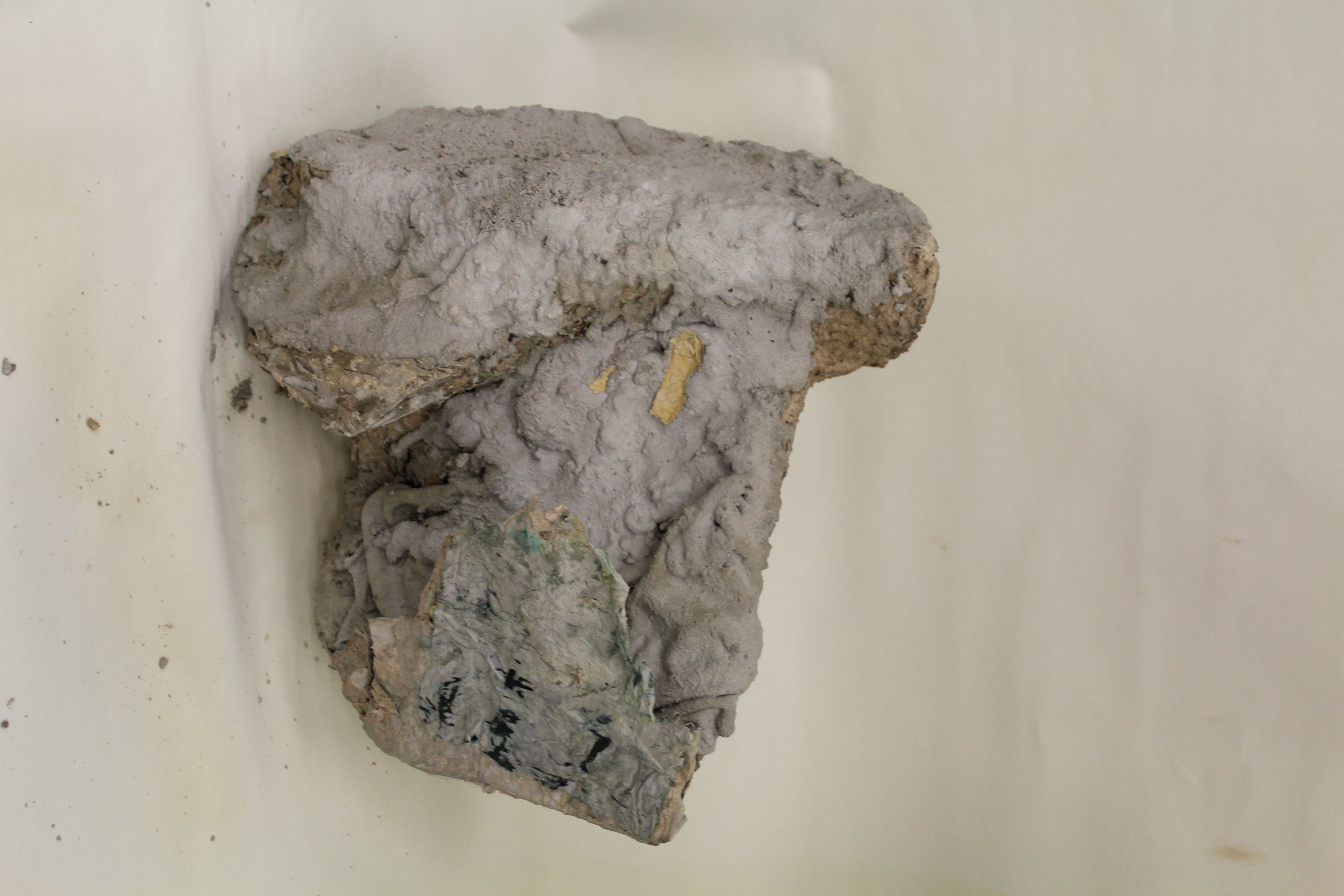 Sculpture, mixed-media; concrete, plaster, foam, wood and ceramics