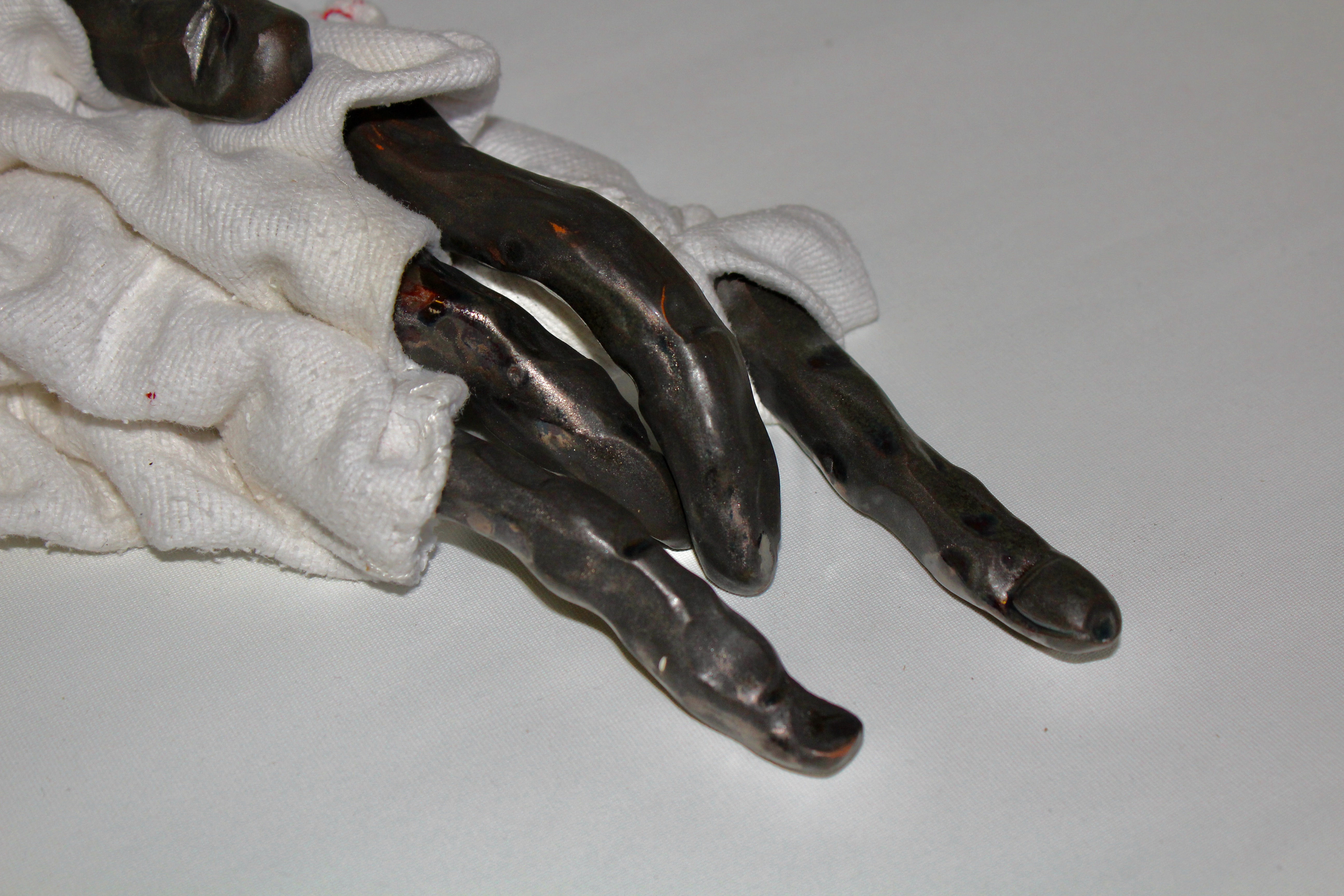 You Offer Your Hand, sculpture, fabric, ceramics.